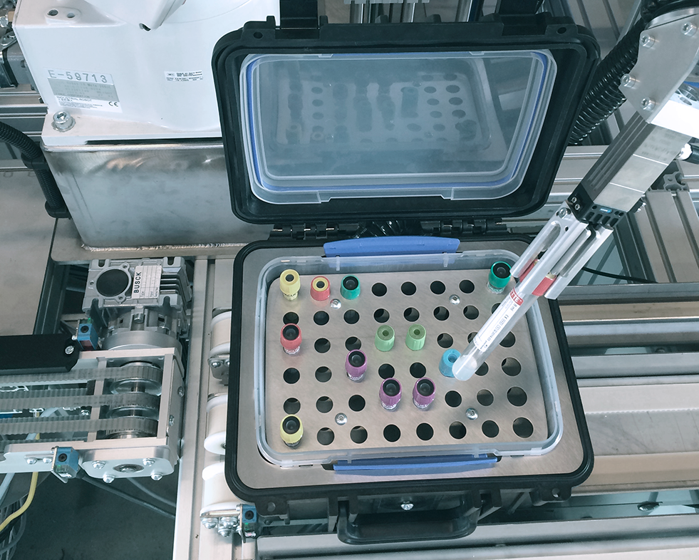 Det automatiserede system til håndtering af blodprøver kan integreres med hospitalets interne logistiksystem.